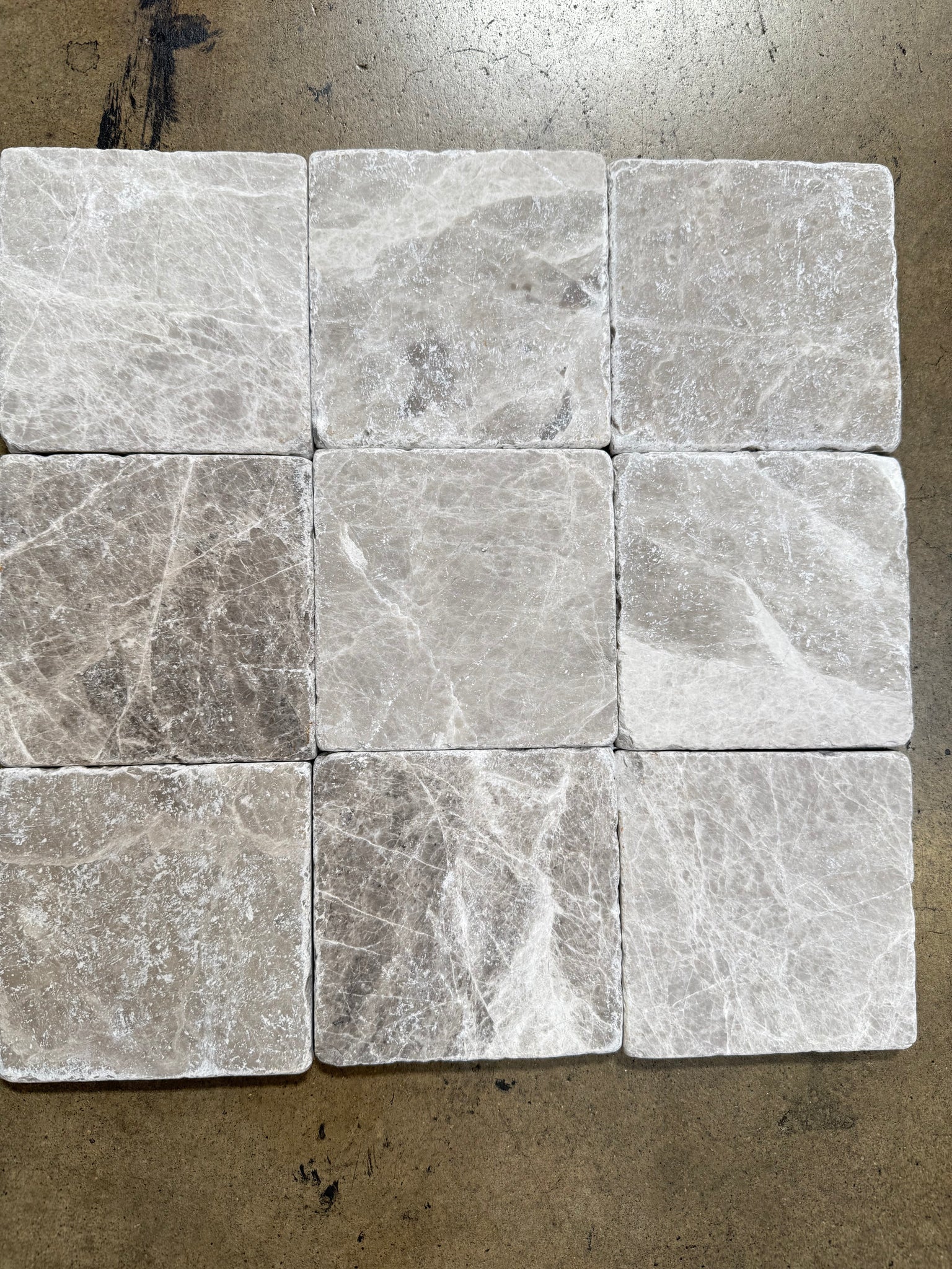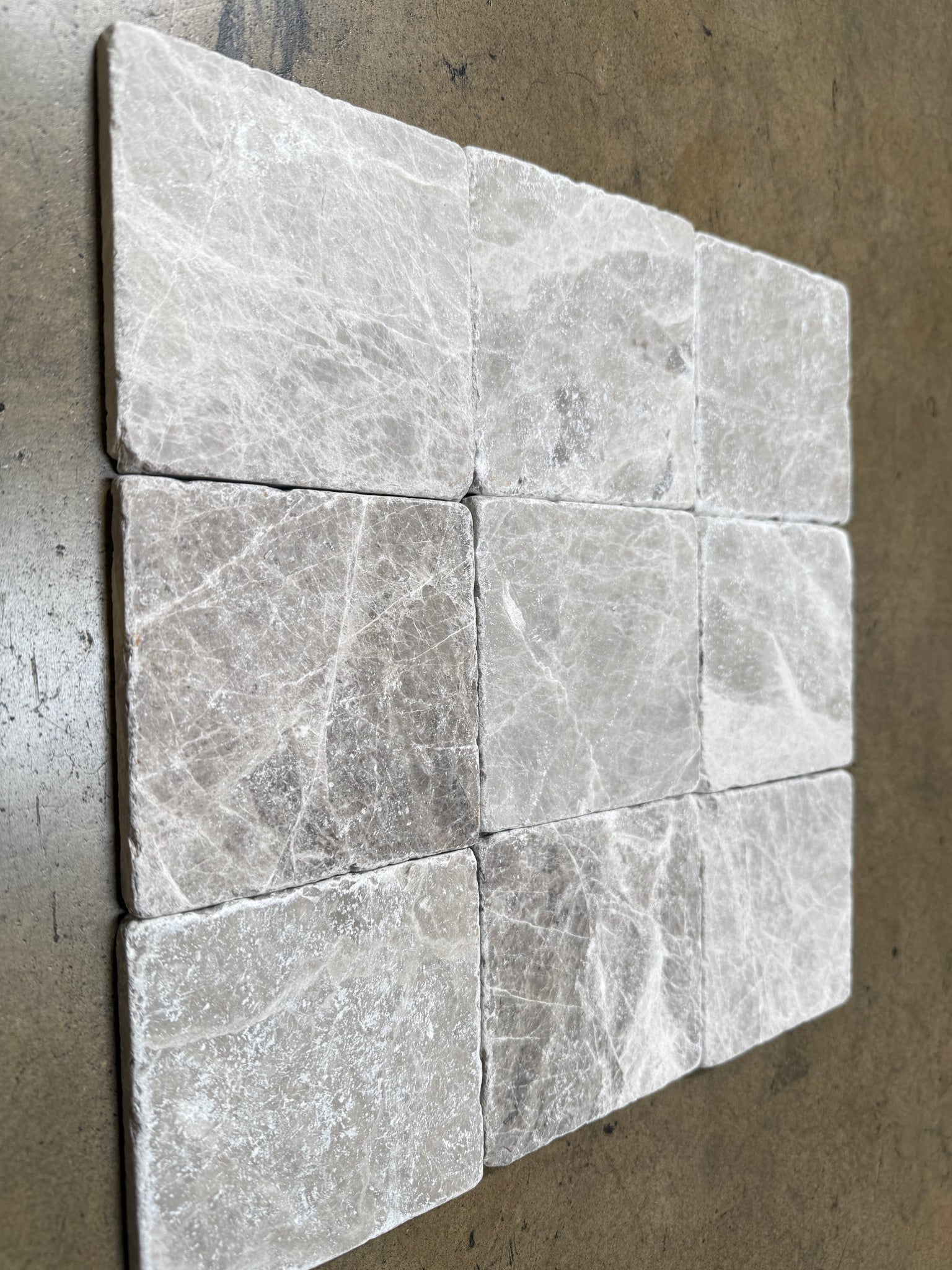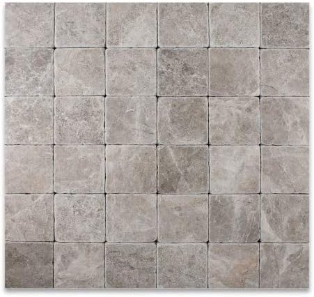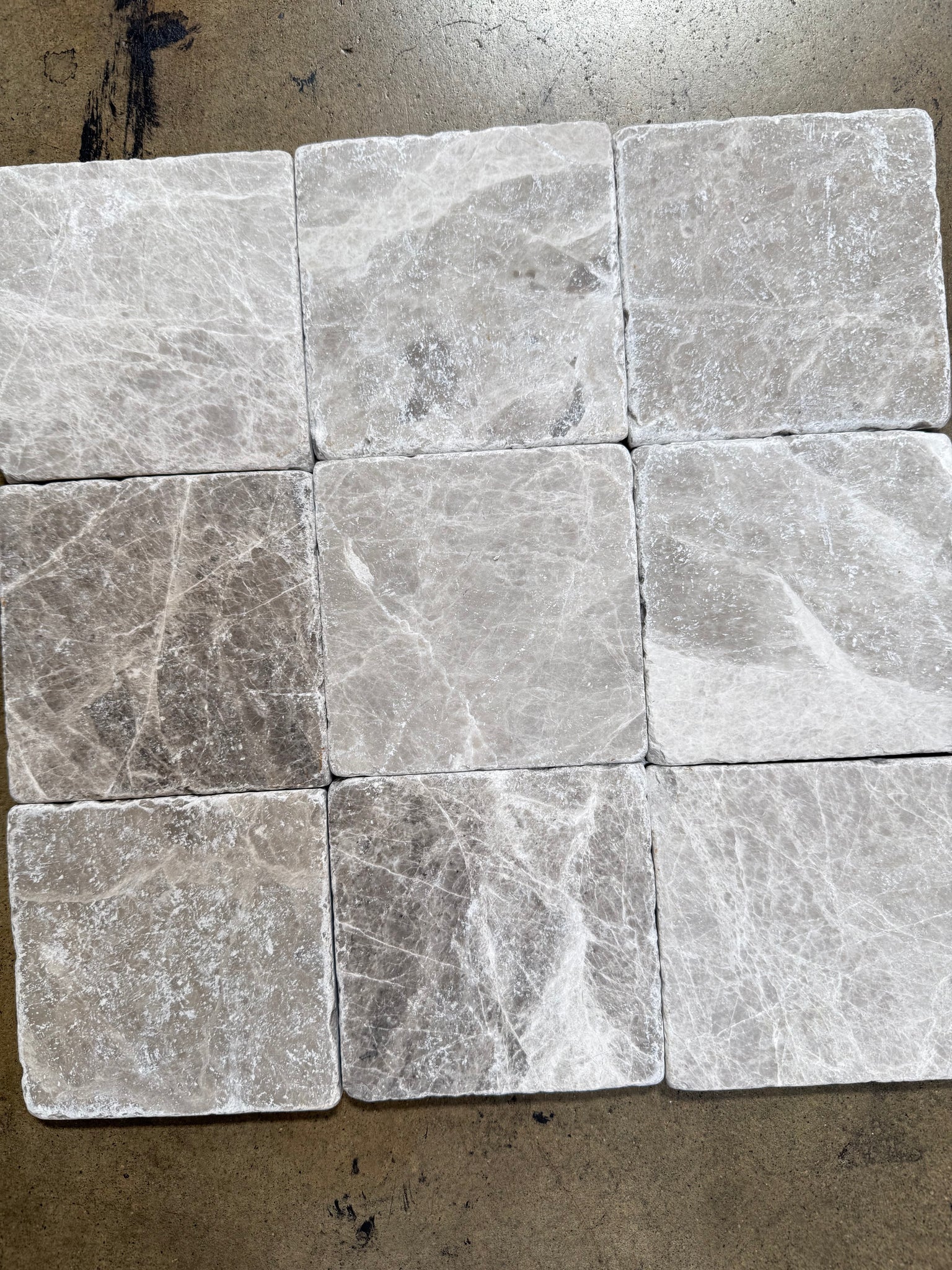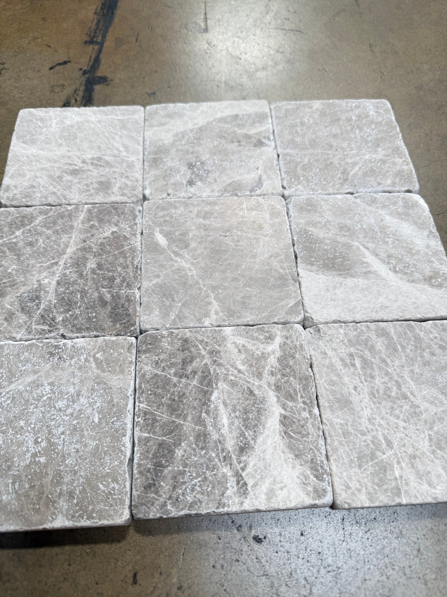 Silver/Gray Marble Tumbled 4"X4" Subway Tile